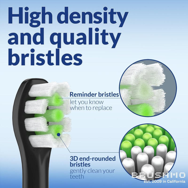 - ADVANCED GUM CARE TECHNOLOGY: Elevate your oral hygiene with Brushmo's advanced toothbrush heads! Featuring German engineered end-rounded bristles made with Dupont filaments, Brushmo's advanced toothbrush heads are scientifically proven to outperform manual brushes by up to 10x in reducing gingivitis.