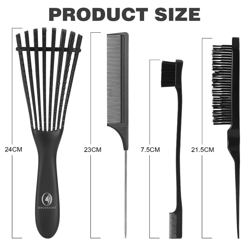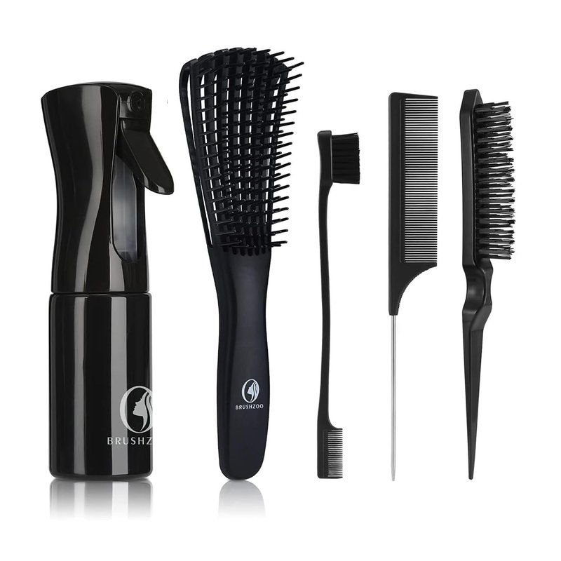 - Hair brush set: include Detangler brush, Spray bottle, Teasing trush, Rat tail comb, Edge brush, suitable for all hair type detangling styling.