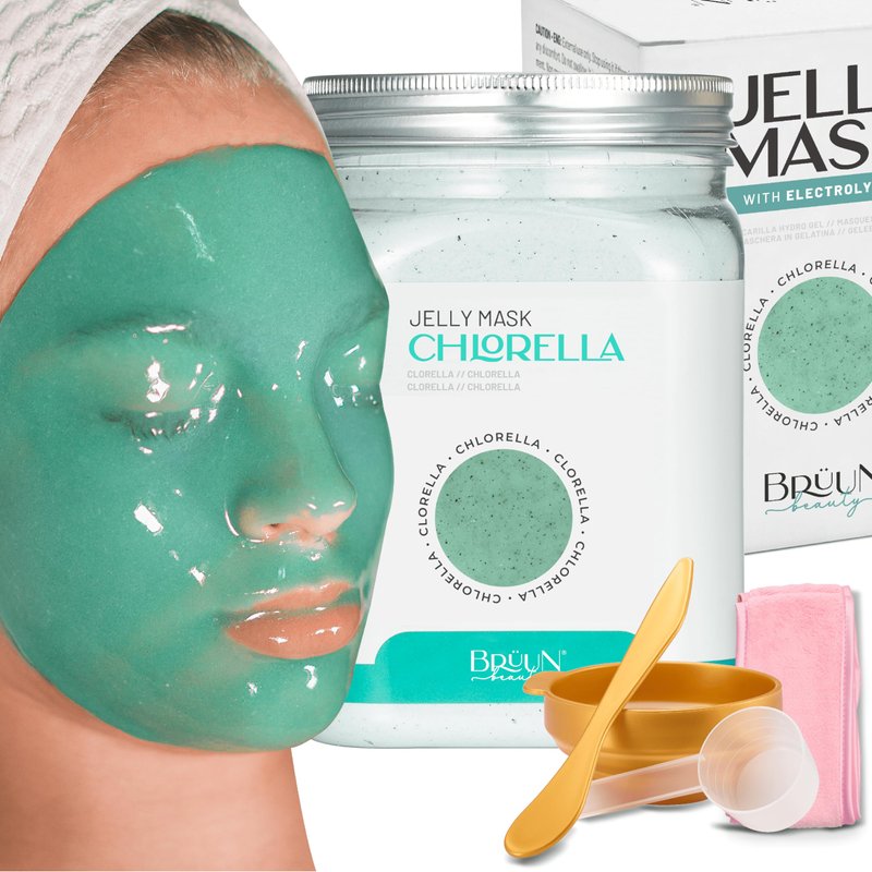 BRÜUN Jelly Mask Jar Chlorella Peel-Off Face Care Rubber Mask - A 23 fl oz Skin Care Moisturizing Gel Mask Jar Spa Set for Men, Women and Adults on Formal Gatherings and Events