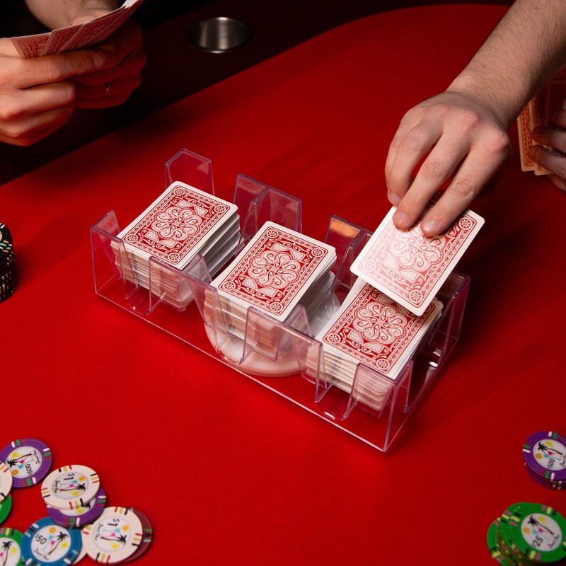- What It Holds: Brybelly clear card tray rotates in any direction and can hold a total of 6 card decks, compatible with both poker size and bridge size playing cards