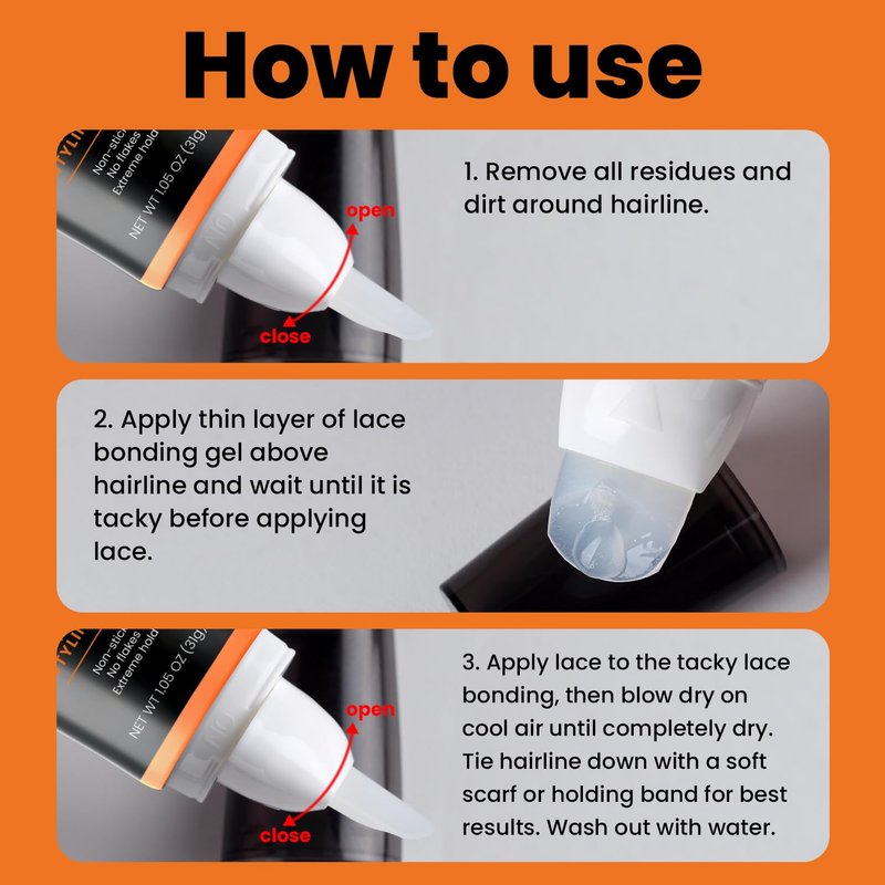 - 【Lace Bonding Gel 】This glueless bold hold lace glue is used to provide a strong hold to your lace wig. Easy to clean off and safe on the edges. Protecting your hair for a perfect, long-lasting style.