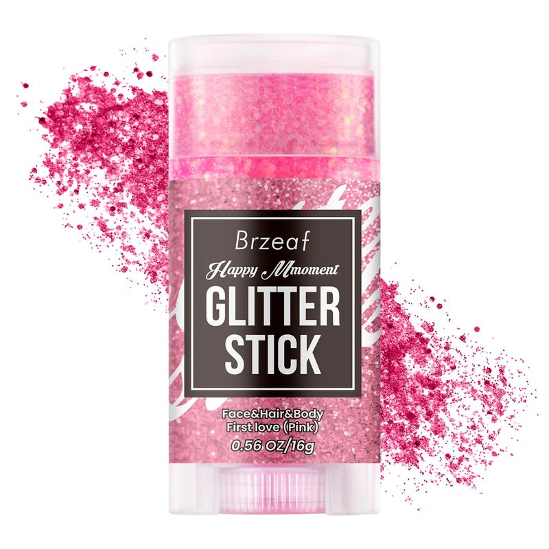 Brzeaf Waterproof Pink Glitter Stick, Shimmery & Long Lasting, Chunky Glitter for Face/Body/Hair/Eyes/Lip, Singer Concert Music Rave Festival, Glitter Stick Makeup & Face Glitter Gel for Women Men