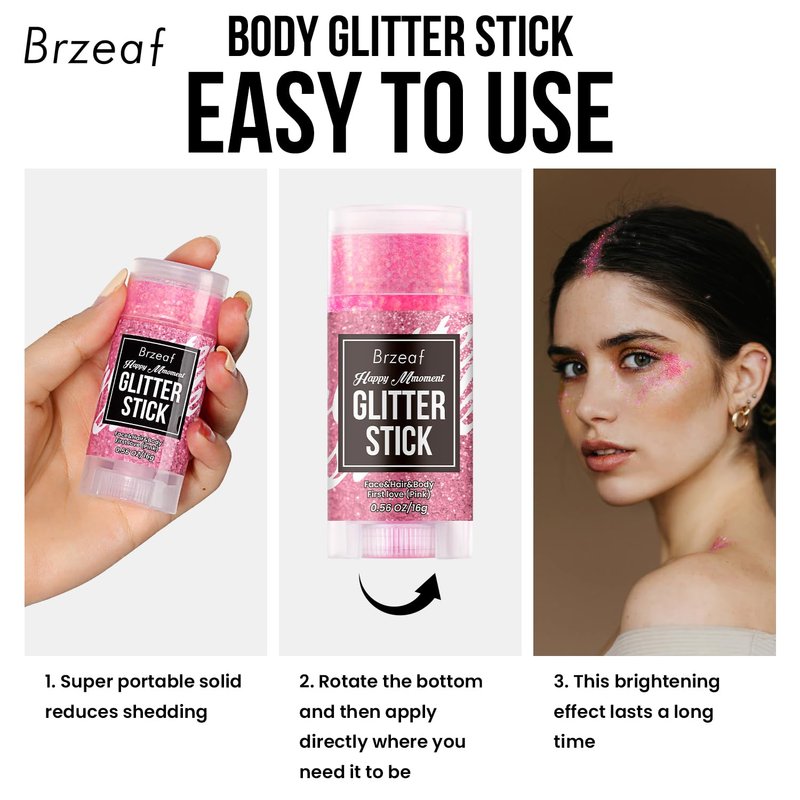 - 【Bright and Lasting Hold】Our pink body glitter stick is makeup product designed specifically for use as accessories for events such as music festivals, concerts, parties or holiday raves. Our pink face glitter stick will sparkle and shine, the color and shine of the sequins change with visual changes, releasing a dazzling light, allowing you to party and create your own sparkling look.