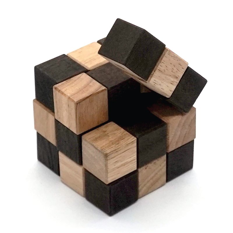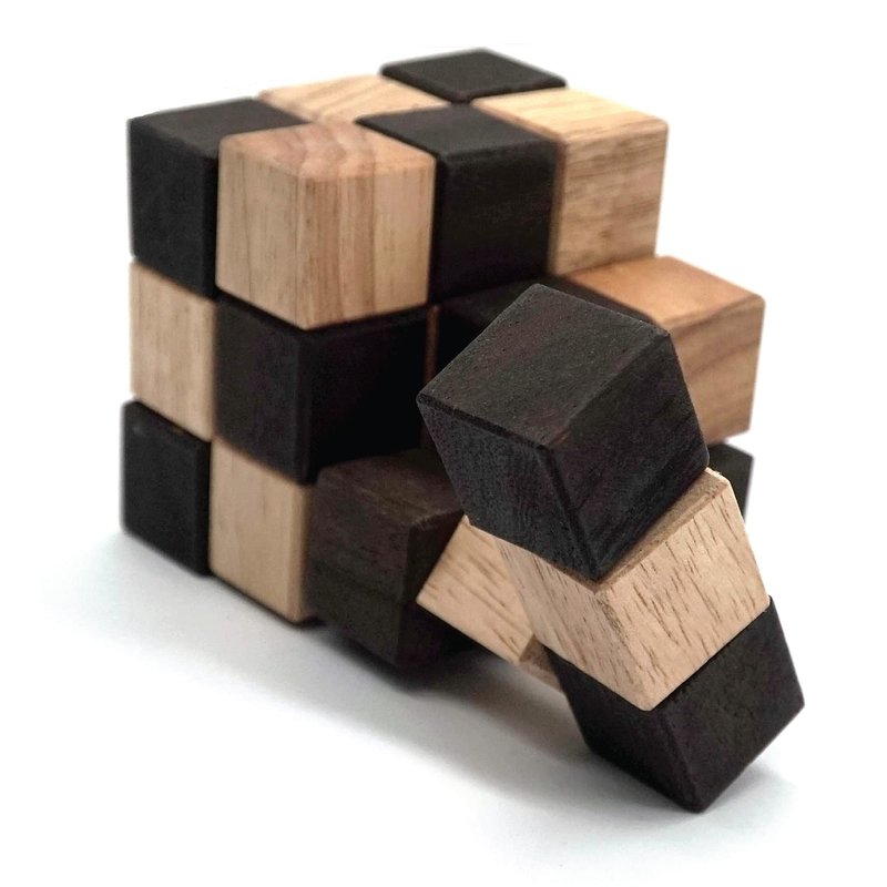 - BRAIN GAMES TEASERS 3D PUZZLE - Keep your family busy with these brain games for adults and kids of snake cube. Brain puzzles for adults is made with wooden 27 cubes and connected by an elastic string that you must arrange the snake puzzle chain to be in the square of the snake cube 3x3.