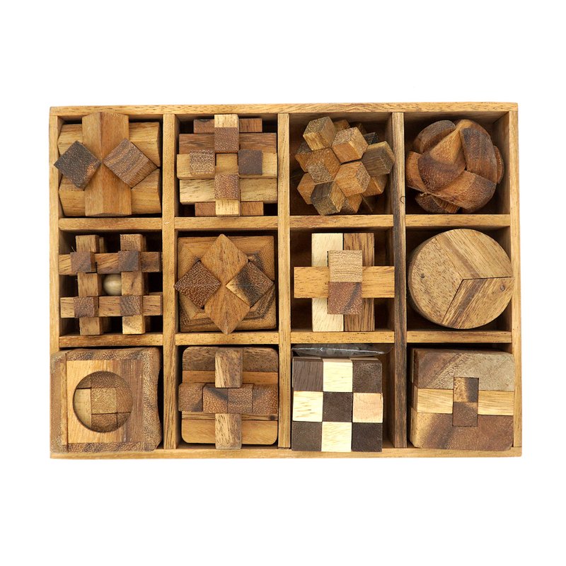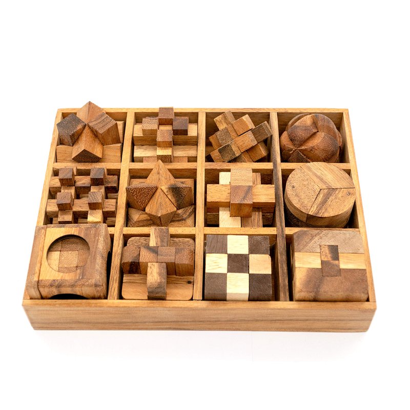 BSIRI Wooden Puzzle Box Set (12 Games) - Challenging Brain Teasers and 3D Puzzles for Adults, Interlocking Games for IQ Test, Ideal for Patio Decor and Unique Gift for Chistmas