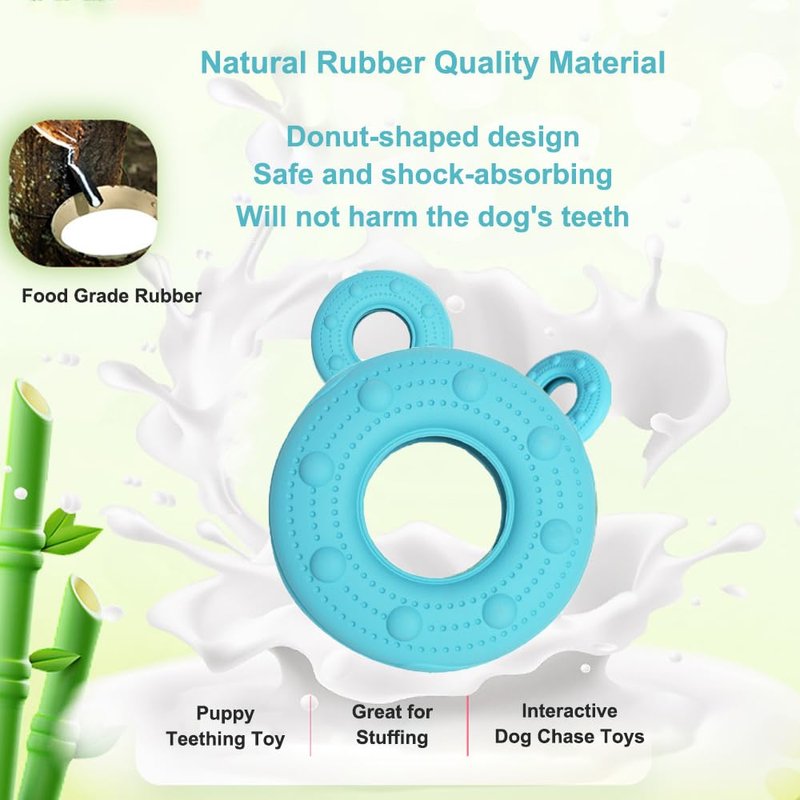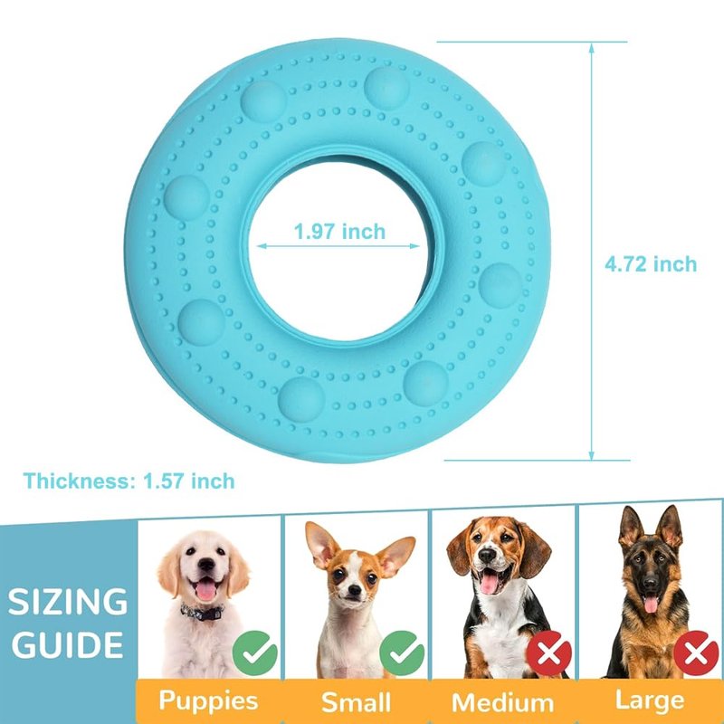 3.Surface raised design, resembling a donut appearance, for puppy and small dogs teething and cleaning teeth.