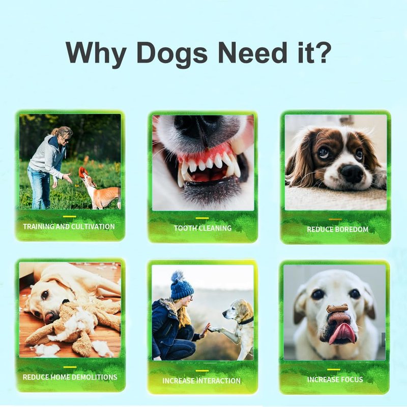 - Interactive Dog Toys: Dog interactive toys can improve dog's intelligence. Indoor and outdoor dog toys can be used as a dog entertainment toy for boredom. Avoid destructive chewing and reduce separation anxiety. It is a best toy to attract dogs to play and enhance interaction with us.