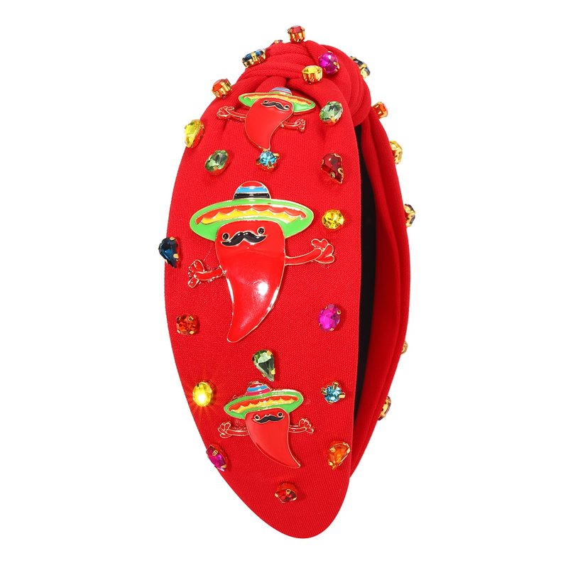 - [Fiesta Headband]Elevate your fiesta and embrace the spirit of celebration with our Cinco De Mayo Crystal Knotted Headband for Women!the perfect fiesta accessory to add flair and festivity to your party attire.This fiesta wide headband capturing the essence of traditional Mexican style,features the sombrero,cactus,chili pepper and maracas,adorned with fiesta colored crystals.Colorful Cinco de Mayo fiesta headbands are a lively symbol of Mexican culture and a testament to the joy of fiestas.