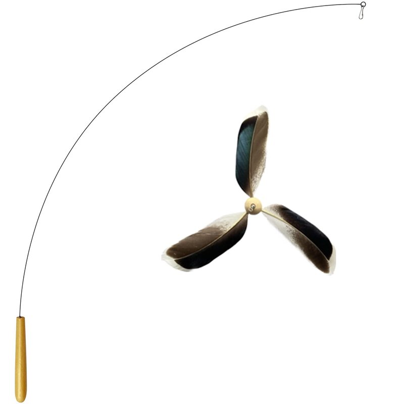 BSLOB Spining Feather Propeller Cat Toy, 35.5 Inch Cat Wand with Solid Wood Handle, Flexible Steel Wire, Natural Feather Cat Toys for Indoor Cats