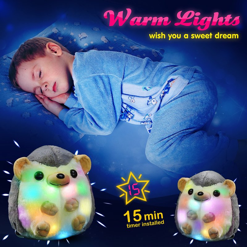 - NICE GIFT FOR KIDS: This nightlight stuffed hedgehog is a perfect gift for toddlers. Outside of kids’ family, the first relationship your child develops may be with a beloved stuffed animal. It is a partner that they can communicate with and connect with. Plush toys allow children to explore emotions they haven’t fully mastered, practice new skills, and build their sense of independence.