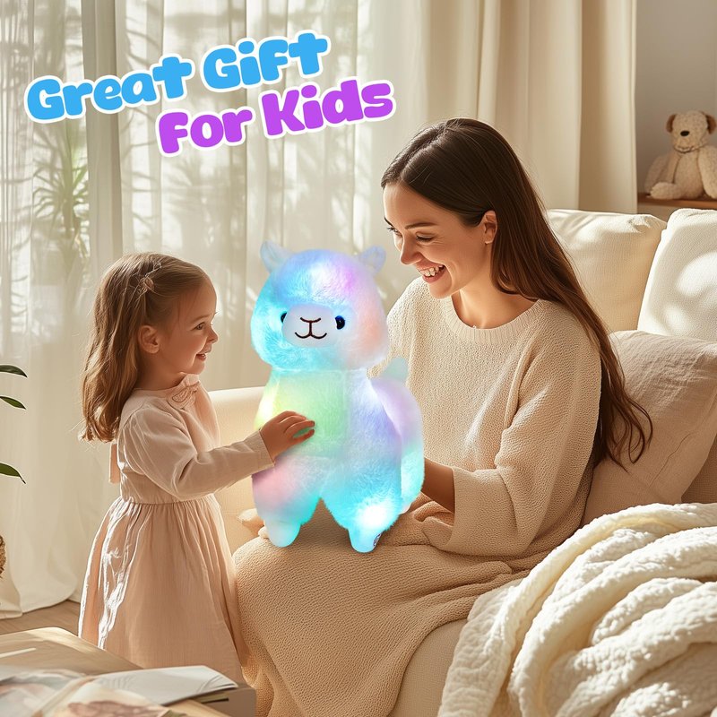 BSTAOFY 13.5'' Light up Alpaca Stuffed Animals LED White Llama Soft Plush Toy with Colorful Night Lights Glow Bedtime Pal Gift for Toddler Kids on Birthday Holiday Valentines Day