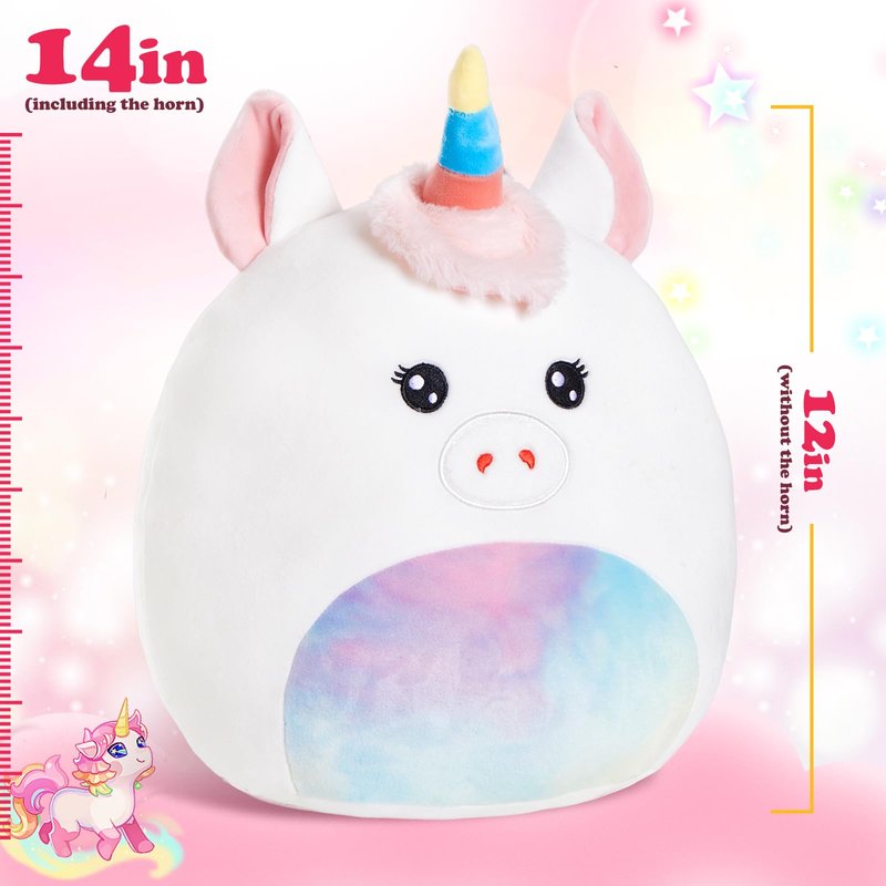 - HIGH-QUALITY - The adorable Unicorn pillow is made of premium plush fabrics and filled with super soft PP cotton, which makes it skin-carefully and soft to touch. The stuffed Unicorn plush pillow is machine washable, and it won’t fade or shed. Besides, every detail is carefully stitched, making it durable enough to withstand thousands of hugs.
