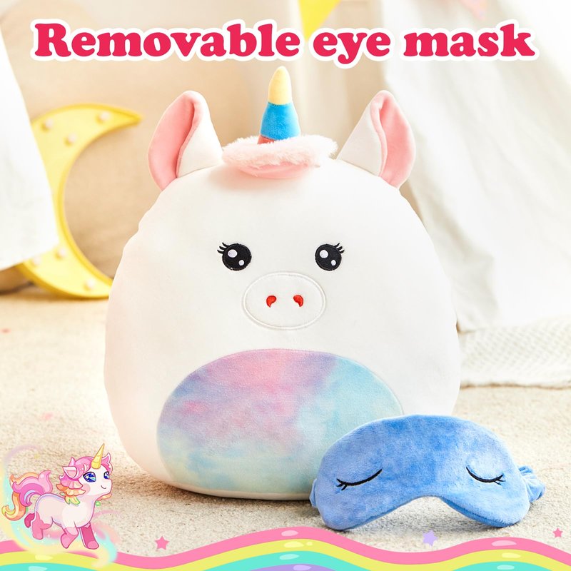 BSTAOFY Cute Unicorn Soft Plush Pillow with Removable Eye Mask Squishy Unicorn Stuffed Animal Cushion Hugging Nap Pillow Valentines Christmas Holiday Birthday Gifts for Toddlers Kids, 12’’