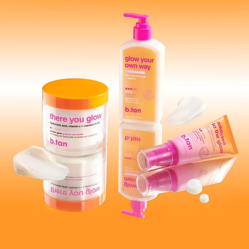 glow wildly from head to toe with our bestselling faves. take your tan up a notch with clear gel glow your own way next level for insanely dark results. no need to hang around while a tan develops... just apply and get on with being you. paired with a buildable gradual mist for face + body to get your face all tan and lock in that golden sunkissed glow. all bundled up with our mitt for the most awesome tan on the planet.