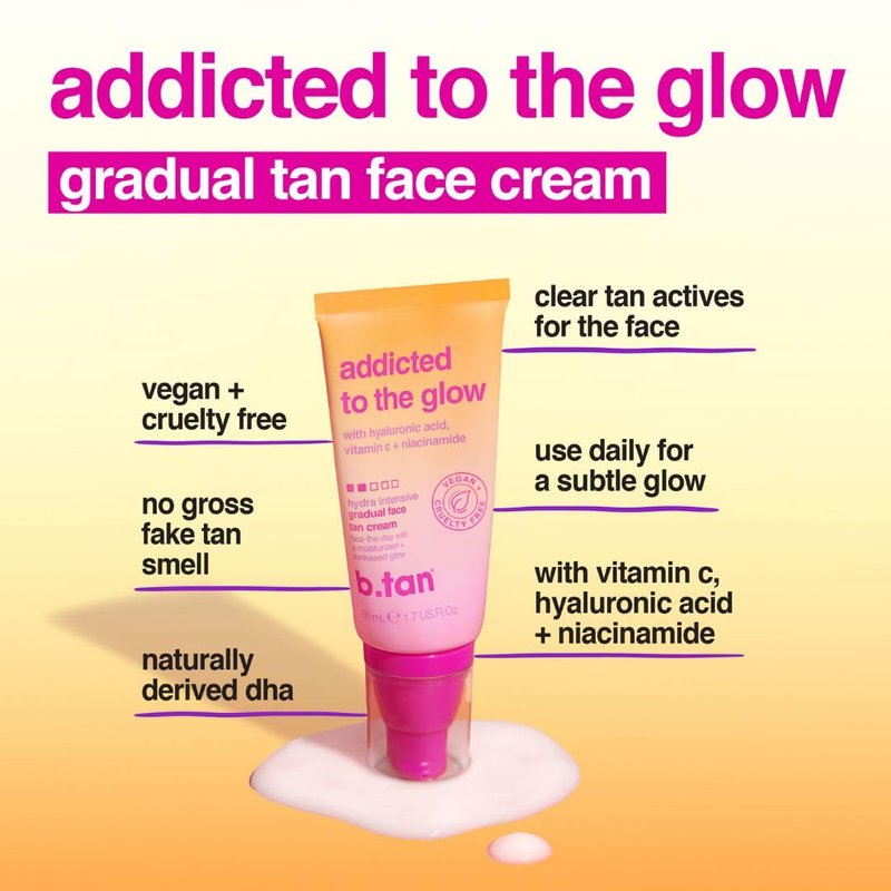 b.tan Gradual Self Tan Face Lotion | Addicted to the Glow - Daily Faical Tanning Cream for a Sunkissed Dark Bronze, Best Sunless Moisturizer, Hydrating Vitamin C, Travel Size, No Fake Tanner Smell