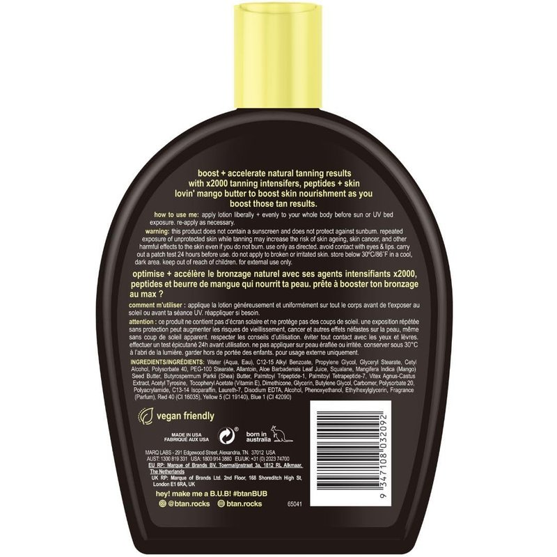 boost + accelerate natural tanning results to the darkest level. with x2000 tanning intensifers, peptides + skin lovin' mango butter to boost skin nourishment as you boost those tan results.