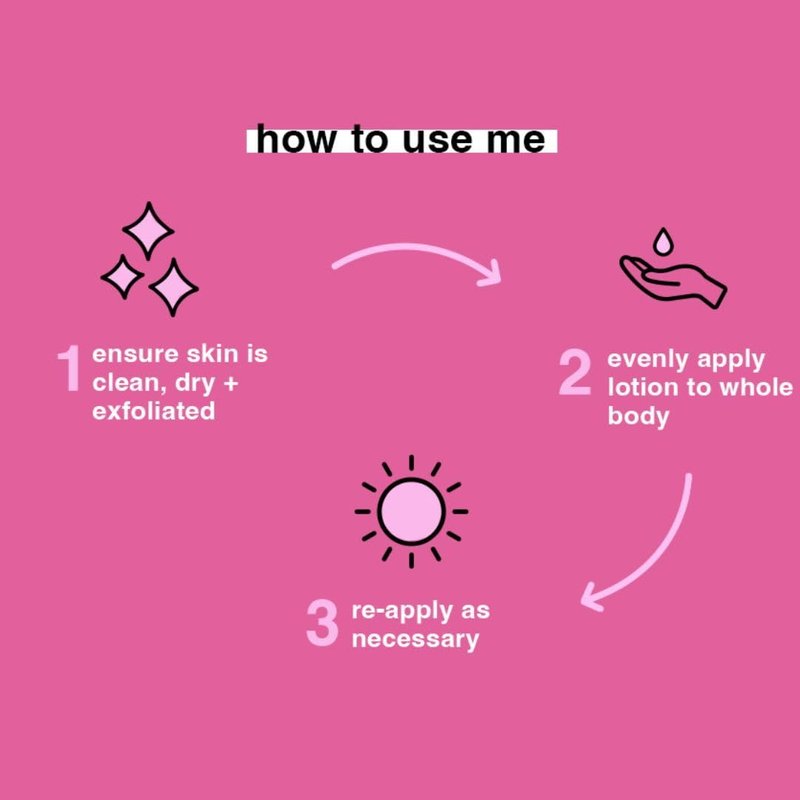 - EASY TO USE. apply lotion liberally + evenly to your whole body before sun or UV bed exposure. re-apply as necessary.