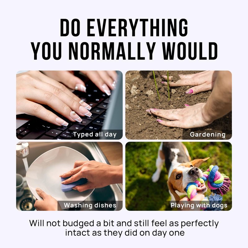- Do Everything You Normally Would: All BTArtbox fake nails short offer feature protective building gel finish so that you are able to do everything you normally would, such as typing, gardening, houseworking or playing with your pet. They will not budged a bit and still feel as perfectly intact as they did on day one.