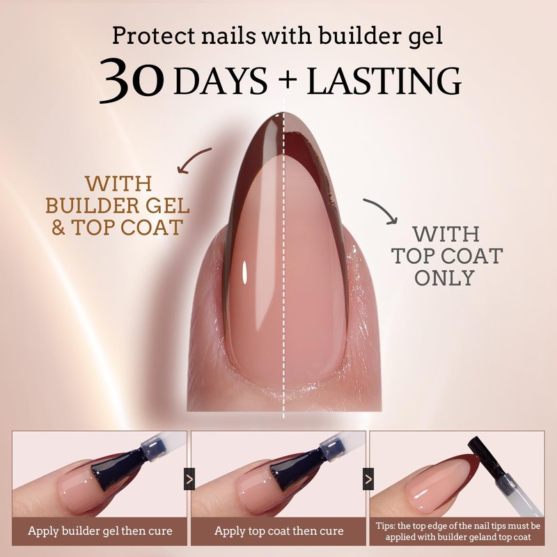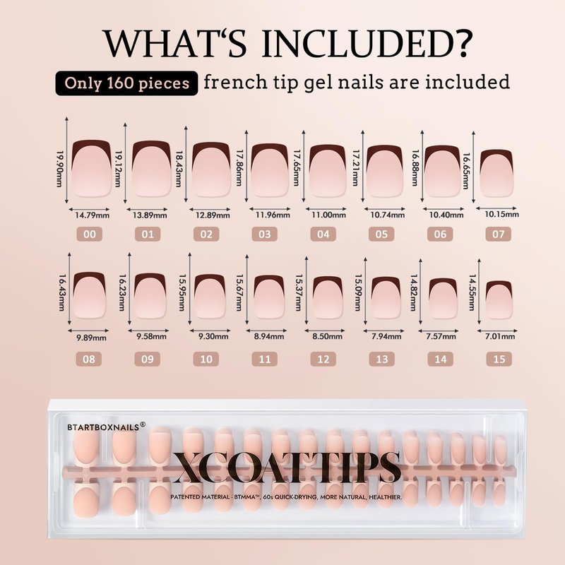 - IDEAL FOR FALLFRENCH MANICURE: btartboxnails French Tip Nails(top coat required) bring you netural colors and classic designs. Get ready for with one bulider gel and one top coat. Then you can create your unique design in fewer steps.
