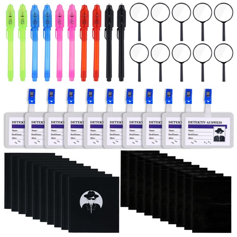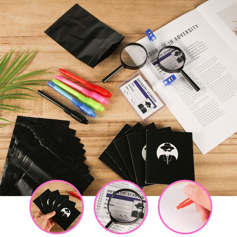 - Package Content: You will receive 1 set of detective themed party games, including storage bags, notebooks, invisible ink pens, magnifying glass and other accessories. This is a complete kit for kids to start the mystery-solving game.