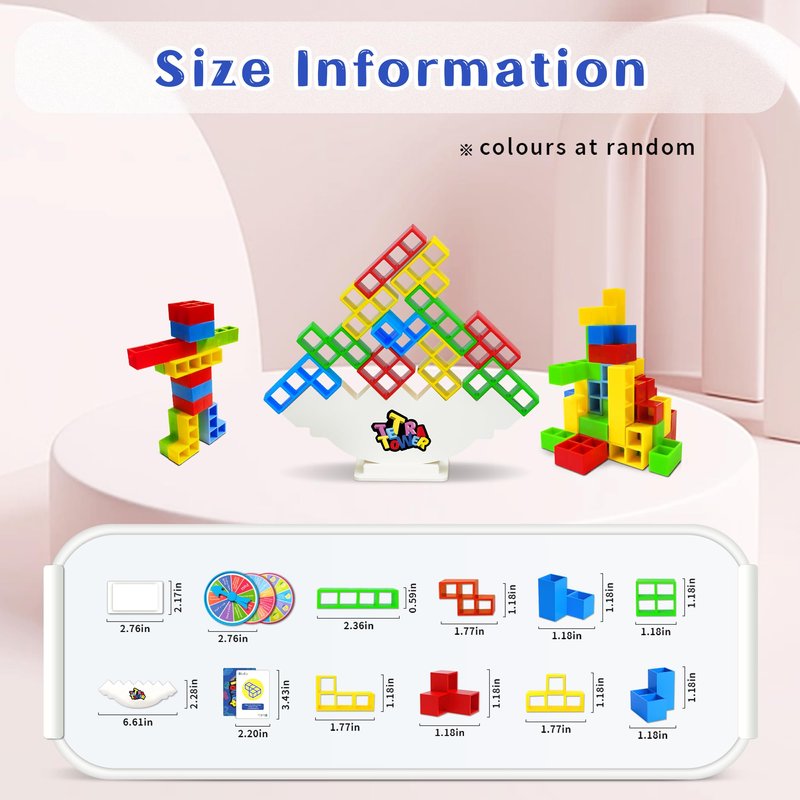 - Fun Balance Game: Colorful tower stacking blocks will help the kid learn colors, train children's balance, concentration, thinking ability,eye-hand coordination improves, and patience,It teaches them about balance, geometry and physics, and spatial awareness in a hands-on and enjoyable way. It's not just a game; it's a learning experience