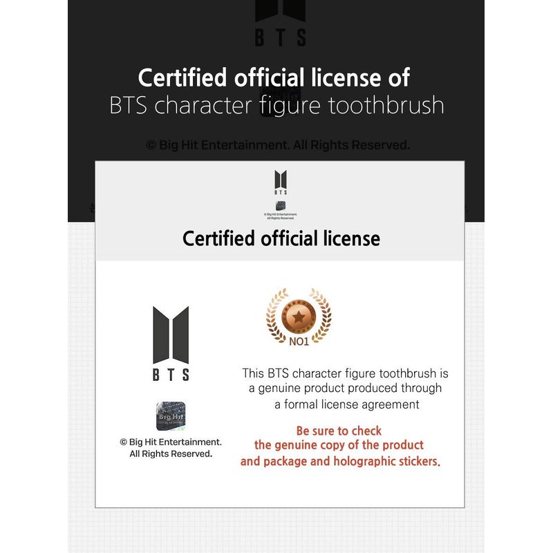 These are authentic licensed Character Figure Toothbrush by Big Hit Entertainment. Every product has an authenticity license sticker on it so you’re sure to receive only authentic product from us.