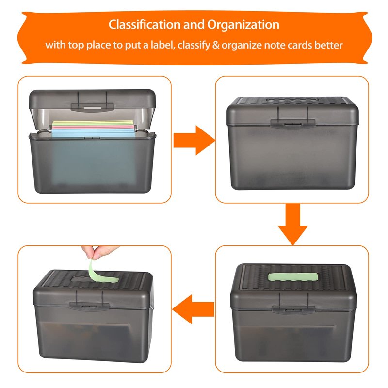 - Multi-Function: The plastic storage container box not only can help effectively store your index cards and postcards, also Ideal for storing game cards or similar size recipes, business cards, filing notes, flashcard, addresses, and other smaller desk accessories.