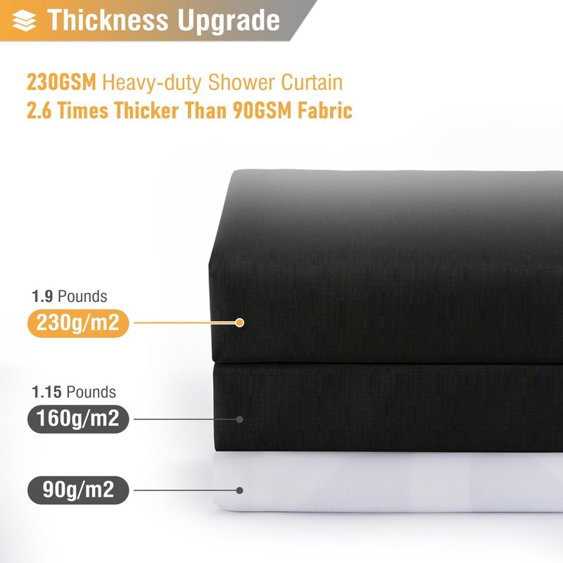 - 🛁【Premium Quality】- Using advanced slub weave, 2.6 times denser than the traditional weave. The high-density weave and heavy duty polyester fabric provide maximum protection for your privacy. The simple and generous solid color style instantly enhances your bathroom taste and allows you to enjoy a luxurious hotel bath at home