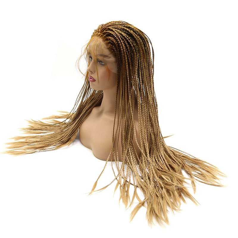 BTWTRY Micro Braided Lace Front Wigs Dark Roots Brown Ombre Honey Blonde Wig with Baby Hair Heat Resistant Fiber Synthetic Lace Front Braid Wig Box Braids Wig (24Inch, Brown/Honey Blonde)