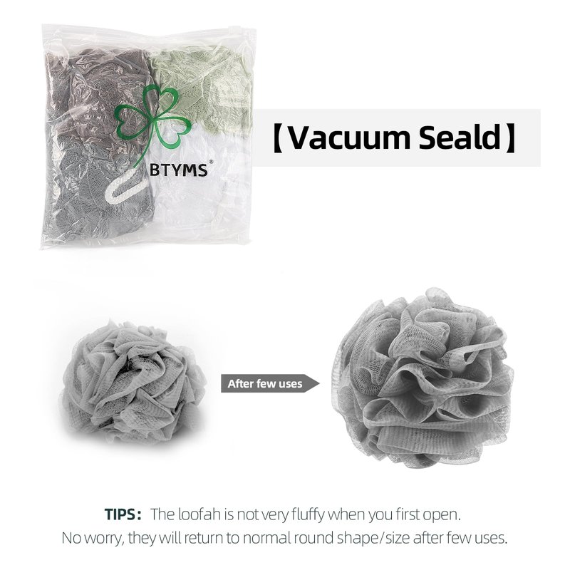 - Vacuum Seald: The loofah sponge is not very fluffy when you first open. They will back up normal shape/size after few uses