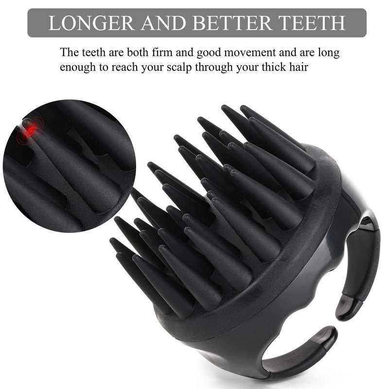 - Works much more efficiently than fingers, makes your scalp cleaner than ever before and doesn't fatigue your fingers. Also great for whom has long and manicured nails.