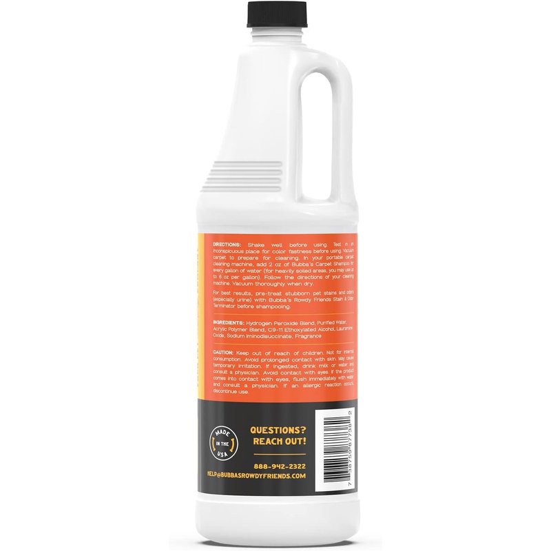 BUBBA'S ROWDY FRIENDS Bubbas Carpet Cleaner Solution for Shampoo Machine - Best Deep Cleaning Solution for Carpets, Rug, Couch, and Car - Works in Any Shampooer - Pet Home Essentials