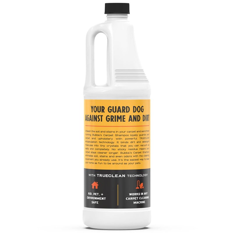 Even the cleanest pooch can make your house smell poochy from buildups of tracked-in dirt, ground-in grime, and other souvenirs of doggo adventures. Thats why Bubbas Rowdy Friends Carpet Shampoo is a welcome family friend. Its powerful encapsulation technology binds dirt and detergent molecules together, crystalizing them as they dry so they can be easily and completely vacuumed up.
