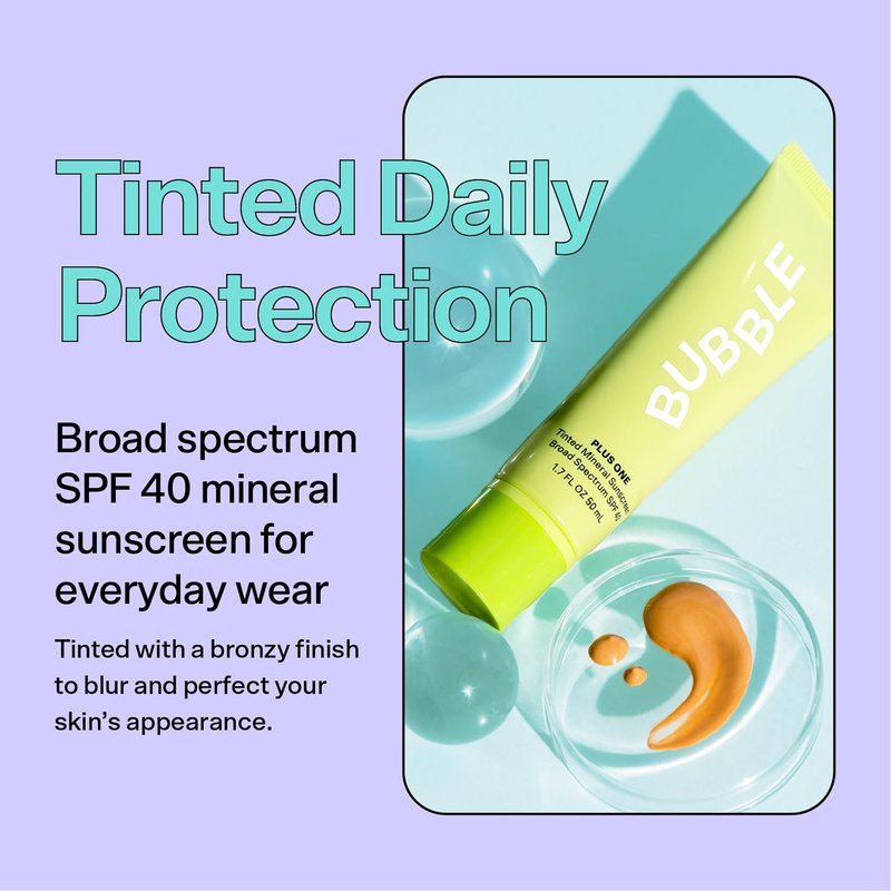 Bubble Skincare Plus One Daily Mineral Face Sunscreen Broad Spectrum SPF 40 - Tinted Sunscreen with Zinc Oxide & Omega 3 Fatty Acids - Hydrating & Blurring Tinted Sunscreen for All Skin Types (50ml)