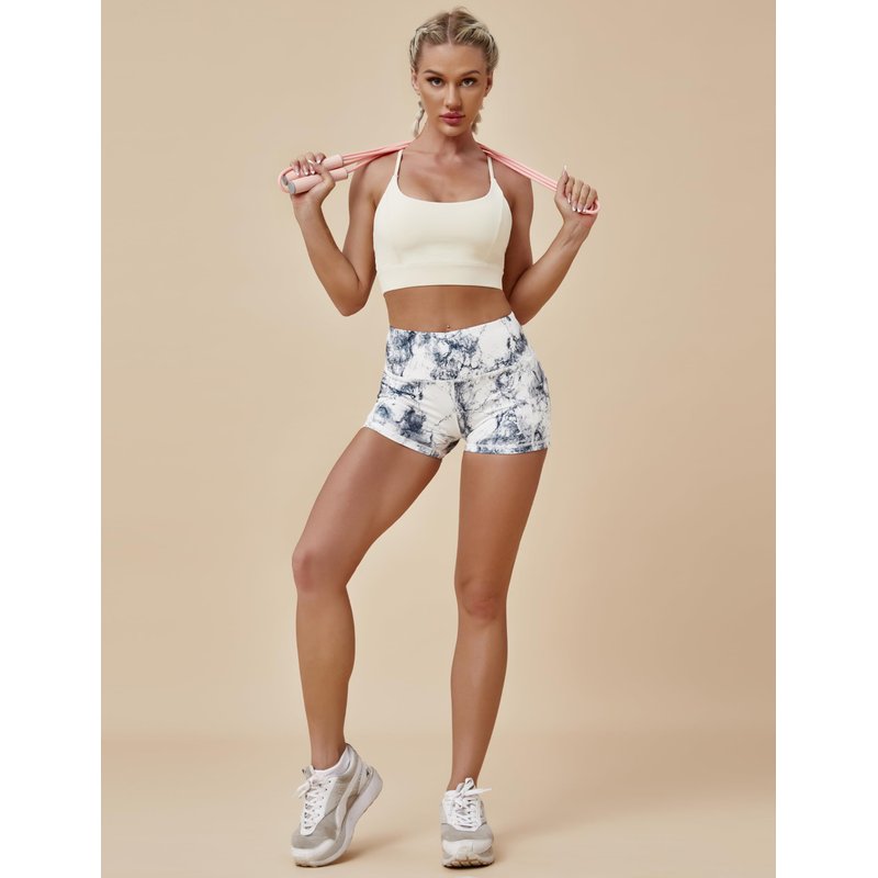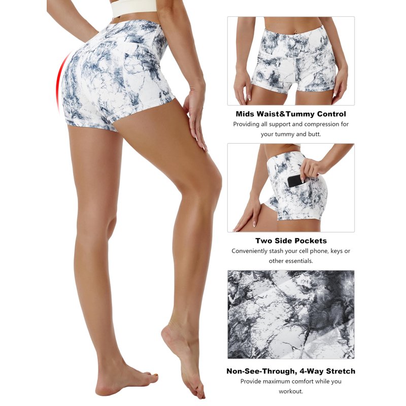 BUBBLELIME 2.5"/4" Stretch Yoga Shorts for Women Tummy Control - 2.5" Side Pockets_ARABESCATO X-Small (2.5" Inseam)