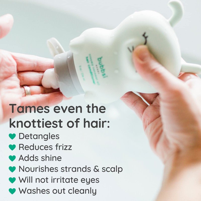 - NOURISHES, SMOOTHS, DETANGLES KIDS HAIR: Our kids hair conditioner tames even the knottiest of hair. Organic Coconut Oil and Shea Butter moisturize strands and scalp, while plant-based conditioners detangle, reduce frizz and add shine, leaving hair feeling purrrfectly soft and ready for cuddles. Will not irritate eyes or scalp, and washes out cleanly without weighing hair down.