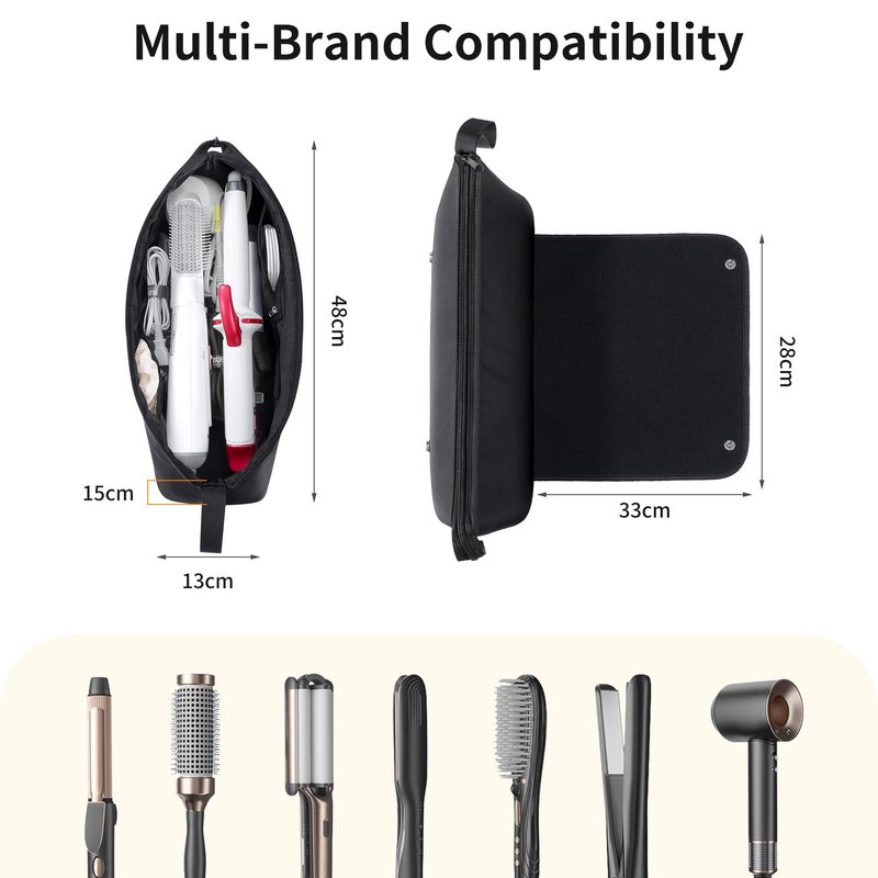 - Large Capacity: The hair tools travel bag organizer measures 15.7"×5"×5", fitting styling tools up to 14 inches long and 4 inches wide. It offers ample space for various hair styling tools, such as curling irons, flat irons, straighteners, hair brushes, hair curler,curling wands, small hairdryers and hair care accessories, etc.