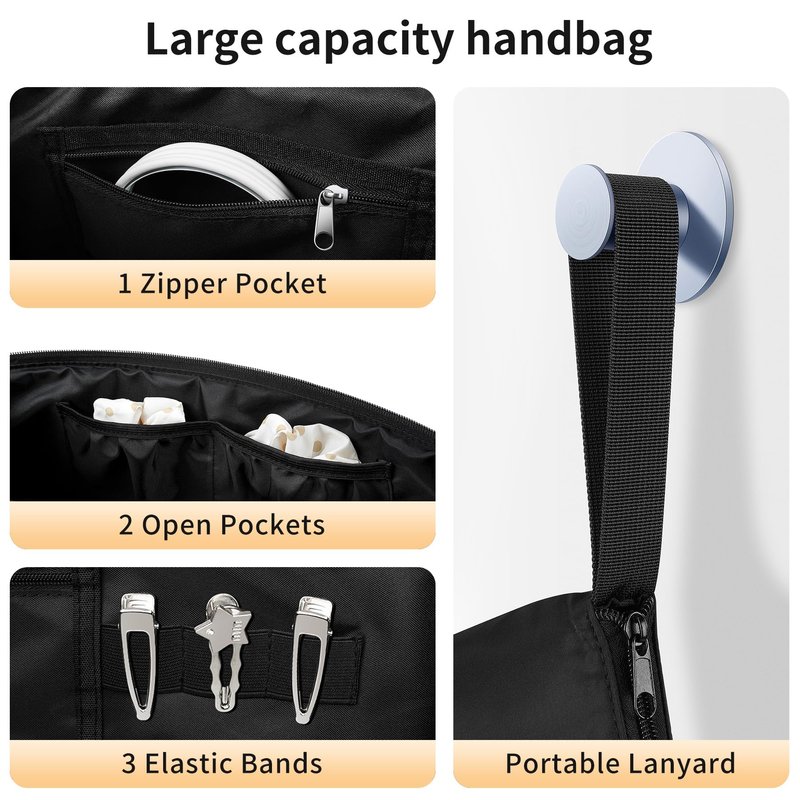 - Multiple Pockets: The hair tool pouch has 1 zipper pocket, 2 open pockets, and 3 elastic straps, keeping your hair ties, hair pins, hair clips, rubber bands and other various hair accessories neatly organized.