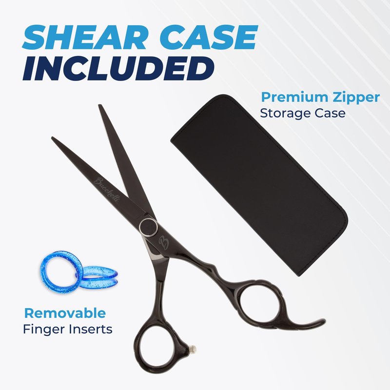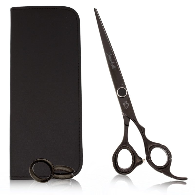 Bucchelli 7 Inch Hair Cutting Scissors Professional - Japanese 440A Barber Scissors 7 Inch - Salon Scissors for Hair -Micro Bevel Edge with Adjustable Tension Knob - Hair Shears Black (Black Right 7")