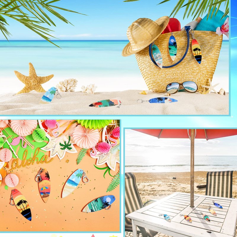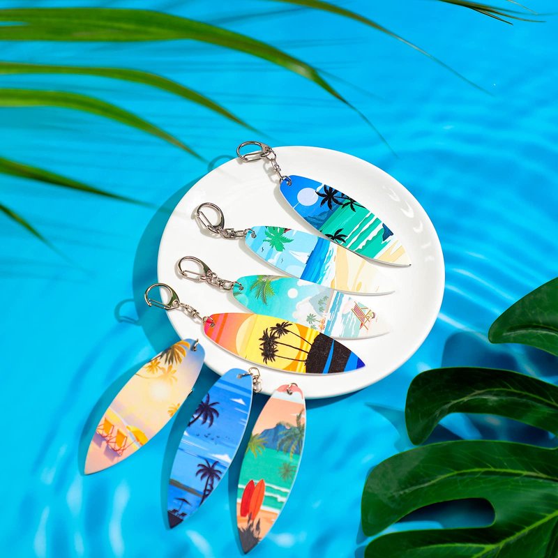- Exquisite Design: these surfboard key chains are in the style of the Hawaiian seaside as a whole; The sea, coconut trees, beach, sunset and other elements make up this surfboard key chain; The overall shape gives people a very comfortable and casual feeling, as if people are enjoying the seaside; Whether it is workmanship or style design, it is a good choice for vacation