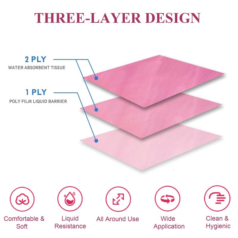 BUCICE 50Pcs Disposable Nail Art Table Towels 3 Ply Tissue Waterproof Lap Cloths 13" x 18" Waterproof Dental Bibs for Patients - Dentist or Medical Tray Cover and Nail Table Cover Supplies, Pink