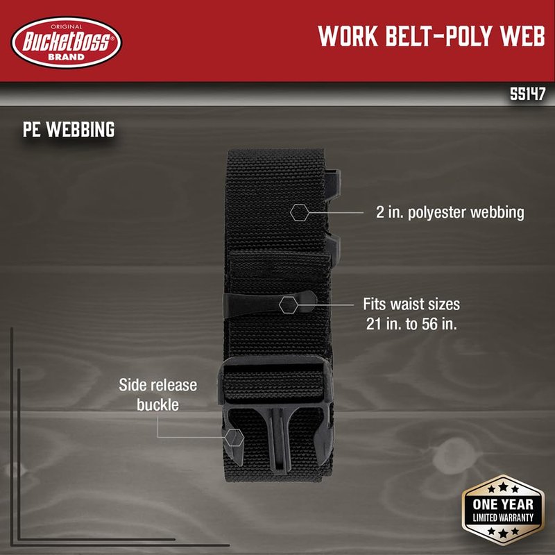 Bucket Boss - Work Belt - Poly Web, Belts & Suspenders (55147), Black