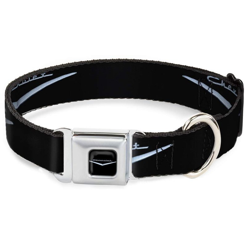 - Style: Buckle-Down Seatbelt Buckle Dog Collar - 1955-57 CHEVROLET V Emblem Black/Silver - 1" Wide - Fits 11-17" Neck - Medium