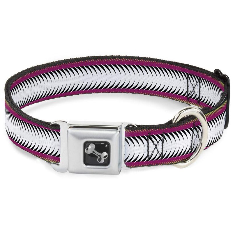 - Style: Buckle-Down Seatbelt Buckle Dog Collar - Fish Tail Fuchsia/Black/White - 1.5" Wide - Fits 16-23" Neck - Medium
