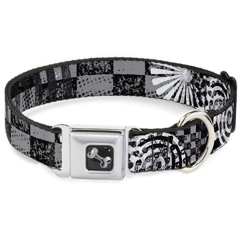 - Style: Buckle-Down Seatbelt Buckle Dog Collar - Grunge Chaos Black/White - 1" Wide - Fits 9-15" Neck - Small