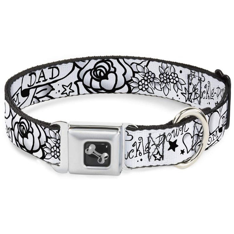 - Style: Buckle-Down Seatbelt Buckle Dog Collar - Mom & Dad Black/White - 1" Wide - Fits 9-15" Neck - Small
