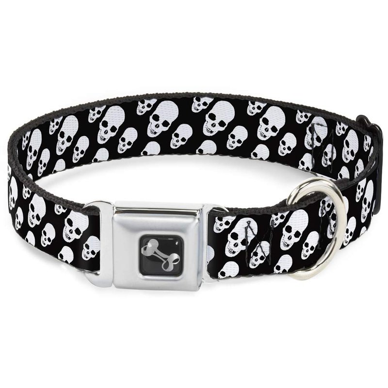 - Buckle-Down Seatbelt Buckle Dog Collar - Tilted Skulls Black/White - 1" Wide - Fits 11-17" Neck - Medium
