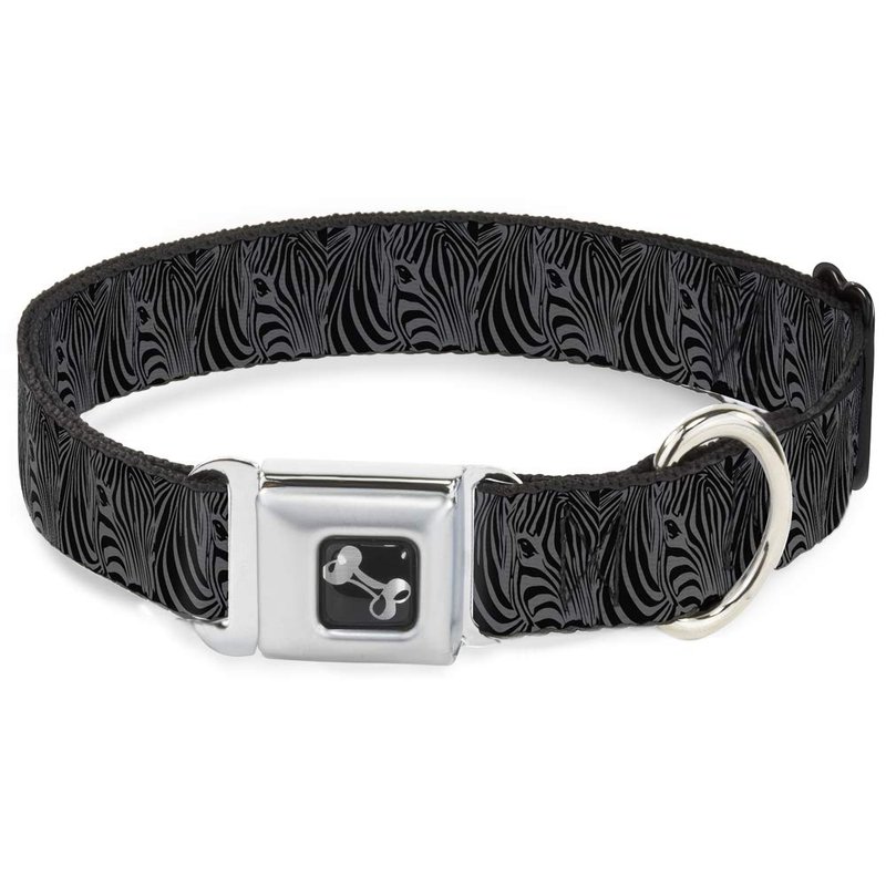 - Buckle-Down Seatbelt Buckle Dog Collar - Zebra Head Black/Gray - 1.5" Wide - Fits 16-23" Neck - Medium