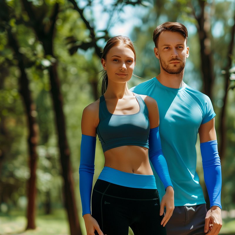 - 1 pair (2 sleeves) Cooling compression arm sleeves made of 80% Polyester, 20% Lycra
