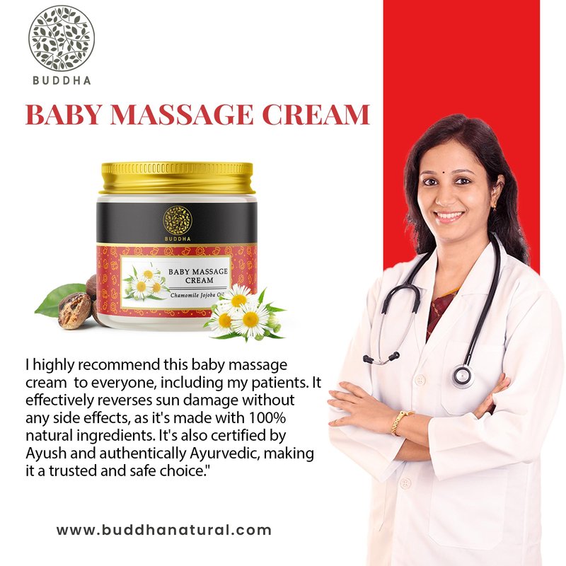 Discover pure nourishment for your baby with Buddha Natural Baby Massage Cream. Crafted with gentle ingredients, it tenderly cares for your baby's delicate skin, soothing and bonding massage experience. massage your little one with the goodness of nature.